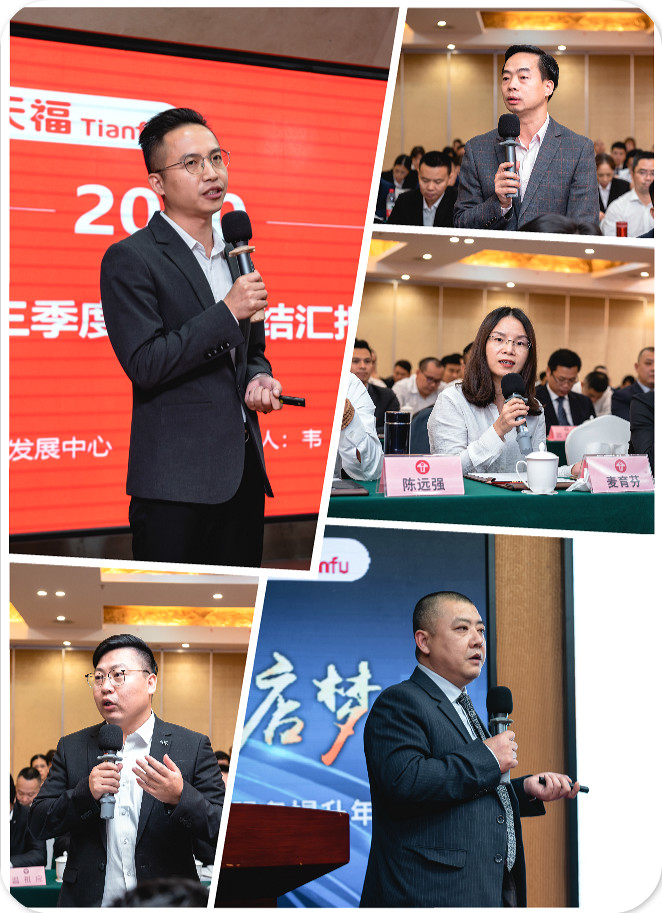 集團公司董事長兼總裁歐陽華金先生在會議上代表集團領導班子肯定了各單位今年以來取得的成績。歐總表示,今年,我們打贏了疫情防控狙擊戰和經濟發展保衛戰,拓展和營運兩大主要指標創下歷史新高,繼續保持行業領先水平。特別是第三季度開店390間,其中9月份開店140間,創下月度、季度開店歷史最好成績。接下來,公司仍需持續加強市場開拓,強化創新精神,完善天福新“基建”。全體員工要進一步堅定信心,克服困難,保持昂揚斗志和進取精神,為集團公司萬店計劃目標的實現而努力奮斗。