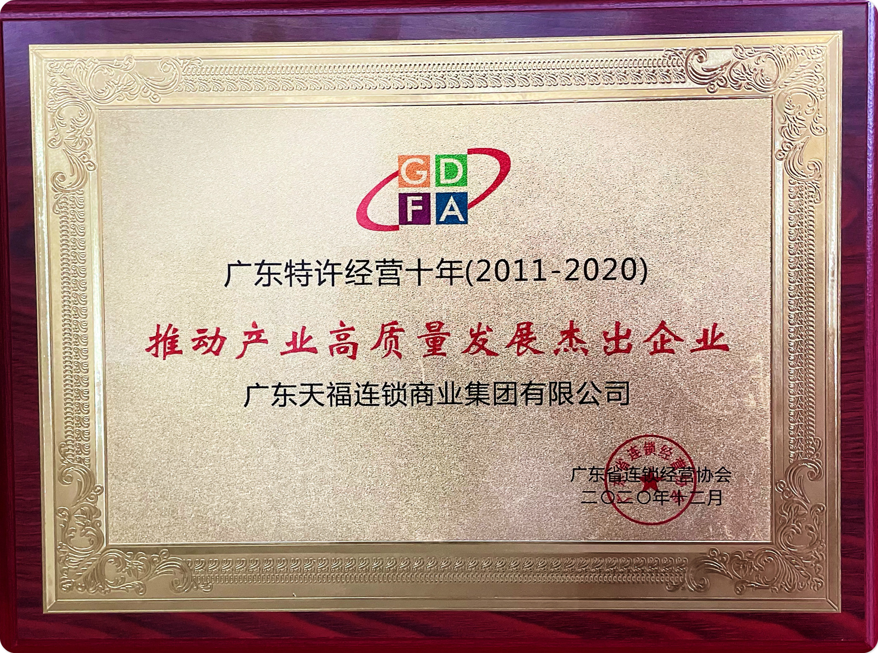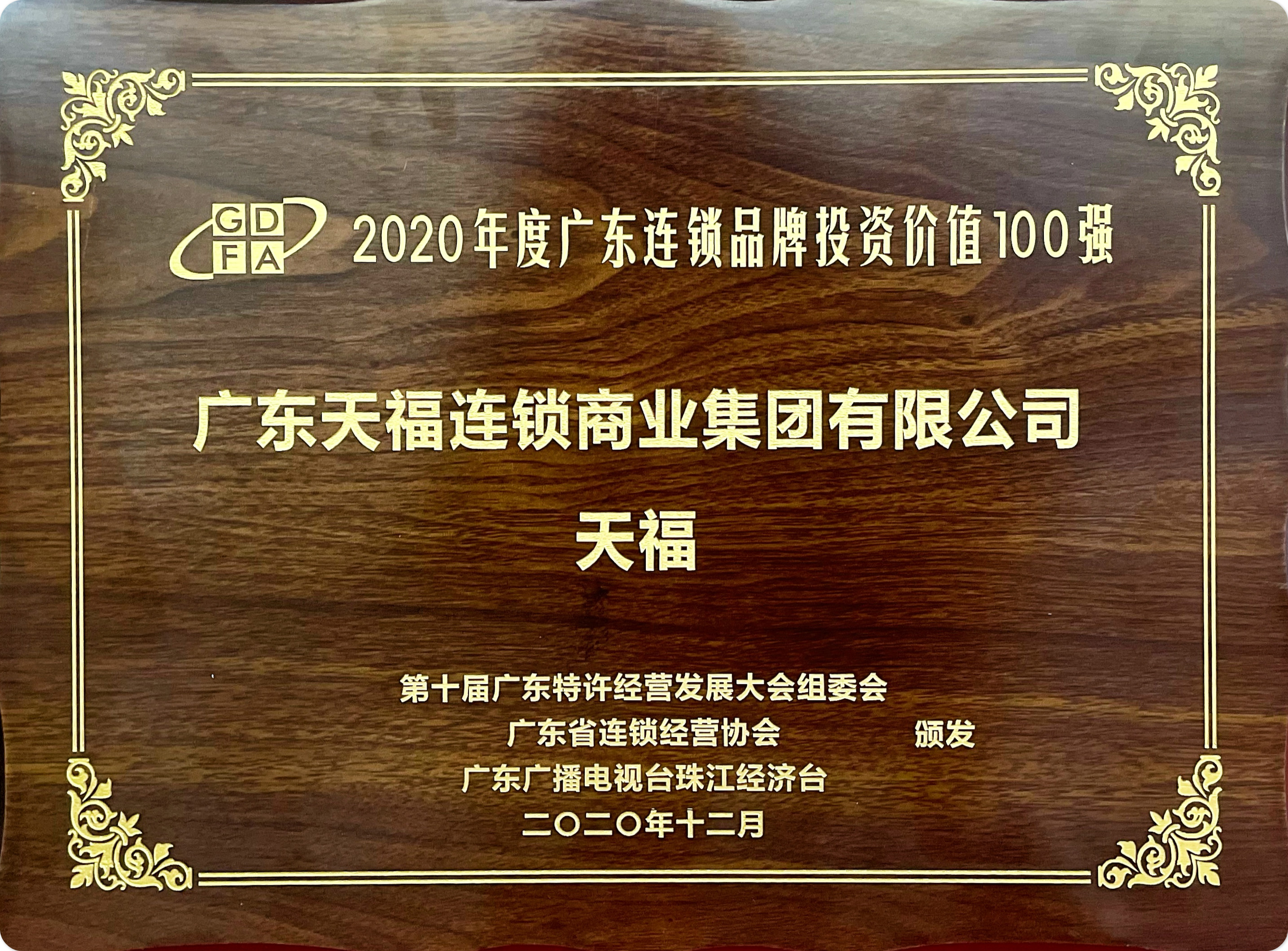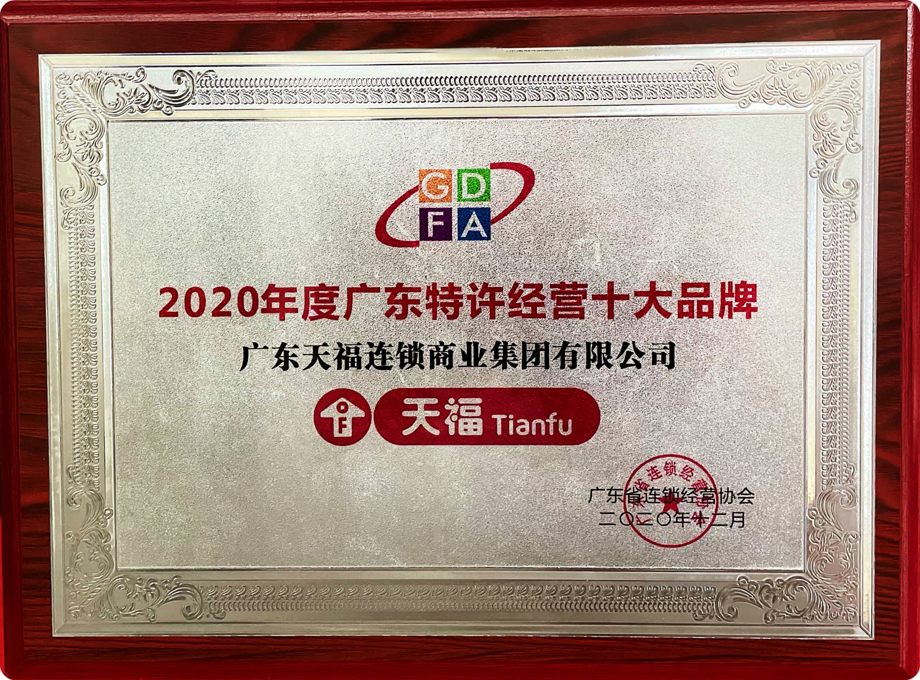 天福集團作為便利店行業中唯一入圍的,被授予“2020年度廣東特許經營十大品牌”的稱號。獲此殊榮代表著協會和社會各界對天福綜合實力的認可和信賴。