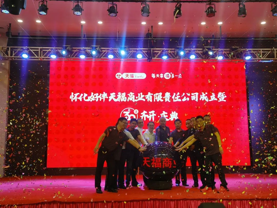 5月29日,湖南懷化好伴天福成立暨“30店齊開”慶祝活動在懷化舉行。懷化工商聯副主席劉德華先生,懷化市經濟開發區管委會副主任裘曉星先生,懷化物流與采購聯合會會長唐文先生,廣東天福連鎖商業集團董事長兼總裁歐陽華金先生,廣東省連鎖經營協會秘書長、天福商學院名譽院長樊飛飛先生,東莞市中小企業發展與上市促進會執行會長、廣東天福連鎖商業集團董事陳啟明先生等領導以及集團總部各職能中心負責人、集團公司2020年度優秀員工代表,懷化好伴天福員工,門店代表,供應商代表等共400余人歡聚一堂,共襄盛事。