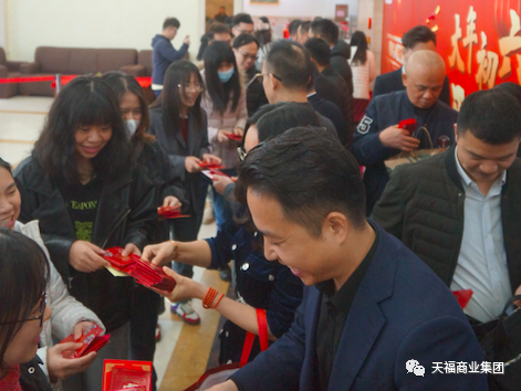 在這歡(huan)樂(le)祥和(he)之(zhi)時,為感謝大(da)家在過去一(yi)(yi)年兢兢業(ye)業(ye)為公司發展所作出的(de)貢(gong)獻,集(ji)團公司組織總部(bu)同事在天福(fu)大(da)廈舉辦了別(bie)開生面的(de)開工(gong)早(zao)茶會(hui),并開展了一(yi)(yi)場(chang)特別(bie)且(qie)隆重的(de)“開工(gong)派利(li)是”活(huo)動(dong)。活(huo)動(dong)上,天福(fu)集(ji)團董事長(chang)兼總裁歐陽華金先生代表公司領導(dao)班子對全體天福(fu)人(ren)在過去一(yi)(yi)年的(de)辛勤努力表示衷心的(de)感謝,并向大(da)家送上了新春(chun)的(de)問候和(he)祝福(fu)。