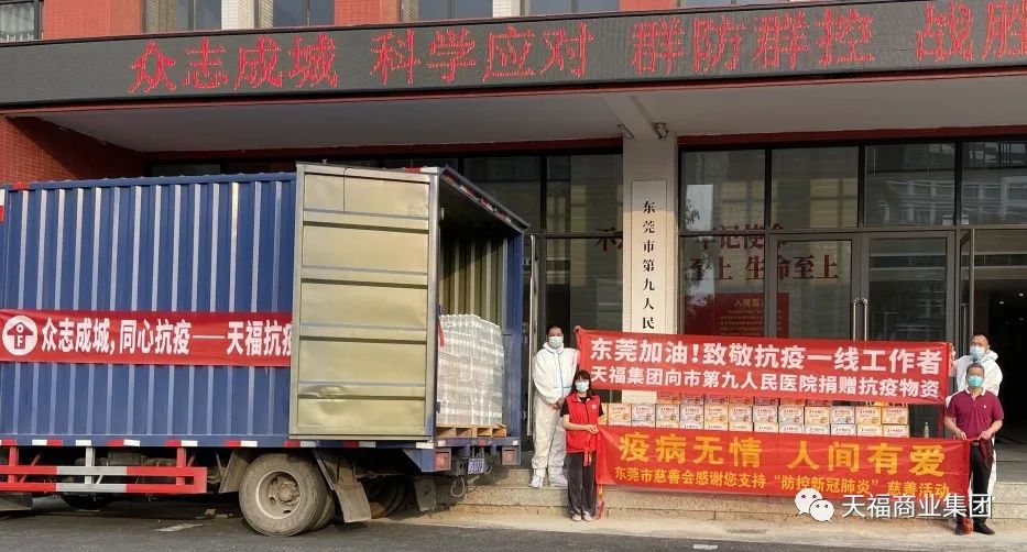 ▲天福集團向東莞市第九人民(min)醫院愛心(xin)捐贈抗疫物資