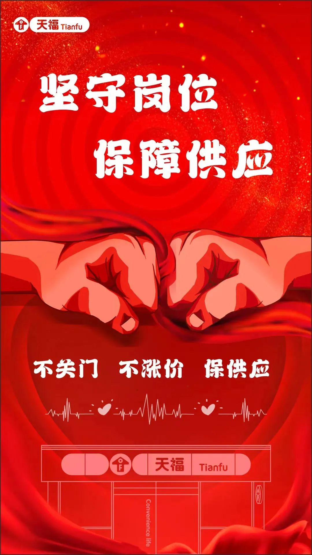 當(dang)時(shi),隨著防控措施的(de)全面升級,城市(shi)大(da)部分(fen)營(ying)業場(chang)所、門(men)店(dian)(dian)一律暫停營(ying)業。此時(shi),與生活必需密切相(xiang)關的(de)天福門(men)店(dian)(dian),自覺地肩負(fu)起(qi)(qi)了保(bao)(bao)供(gong)穩(wen)價(jia),穩(wen)定民生的(de)責(ze)任。疫情期(qi)間(jian),天福集團發布門(men)店(dian)(dian)保(bao)(bao)供(gong)應(ying)(ying)倡議書,倡議門(men)店(dian)(dian)堅持不關門(men)、不漲價(jia)、保(bao)(bao)供(gong)應(ying)(ying),積(ji)(ji)極落實(shi)防疫“五件(jian)套”。全體天福門(men)店(dian)(dian)積(ji)(ji)極響應(ying)(ying)號召(zhao),日(ri)夜奮戰在門(men)店(dian)(dian)當(dang)中,用行動踐行使(shi)命(ming),全力以赴為市(shi)民群眾(zhong)筑起(qi)(qi)民生防線!