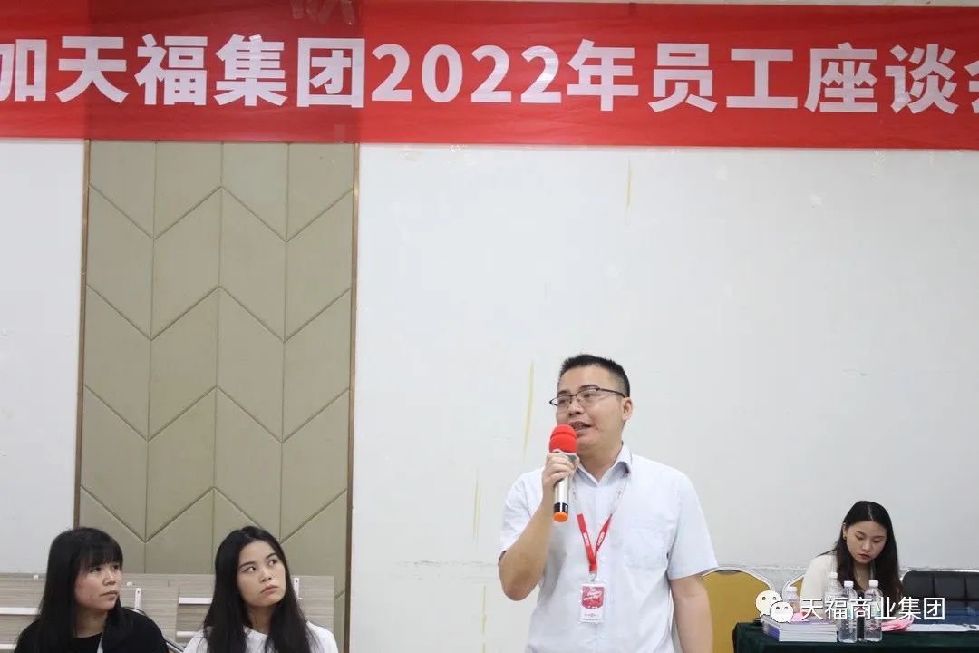 座談會上,集團常(chang)務副總(zong)裁(cai)成(cheng)世恩(en)先生為(wei)新進員工們分享(xiang)了當前(qian)行業發展前(qian)景(jing),指出(chu)在疫(yi)情(qing)大環境下(xia)便利店行業(ye)的堅(jian)挺(ting)與(yu)穩步發展態勢,并向(xiang)員工(gong)代表(biao)們提出(chu)了兩(liang)點期望:一是盡快(kuai)適應工(gong)作,融入天(tian)福文化氛(fen)圍;二是做好(hao)表(biao)率,積(ji)極(ji)投入工(gong)作,傳遞奮(fen)斗精神。