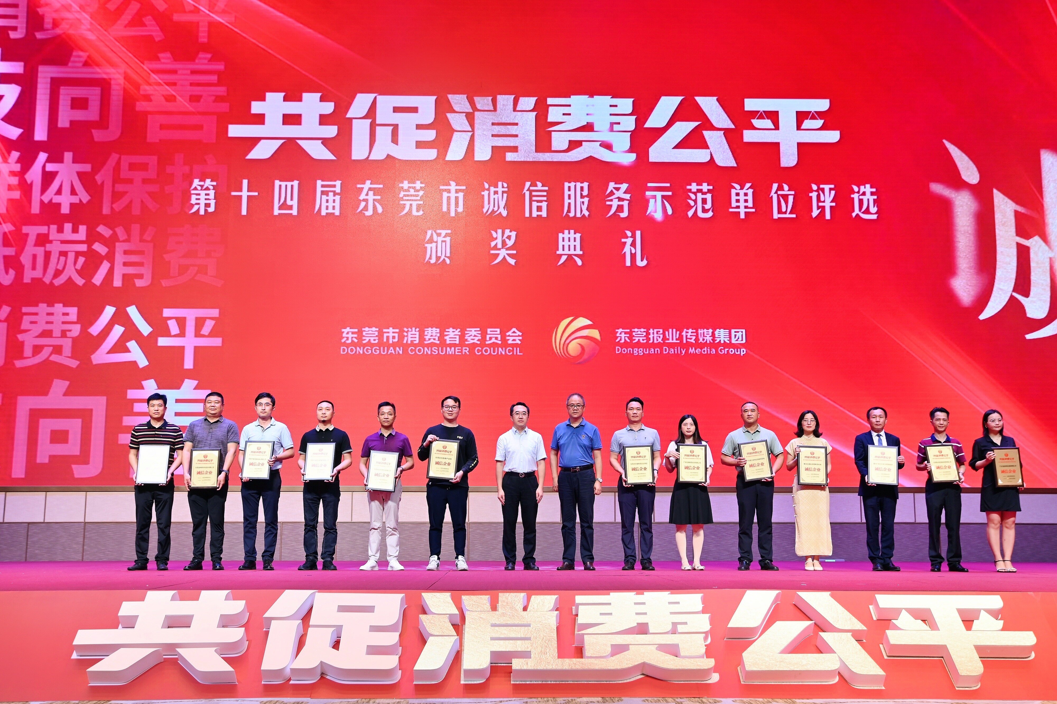 6月24日下午,由東莞消委會指導、東莞報業集團主辦的“共筑誠信·安心消費”第十四屆東莞市誠信服務示范單位評選頒獎典禮隆重舉行,天福集團憑借企業影響力以及誠信服務脫穎而出,榮獲“誠信服務示范單位”稱號。