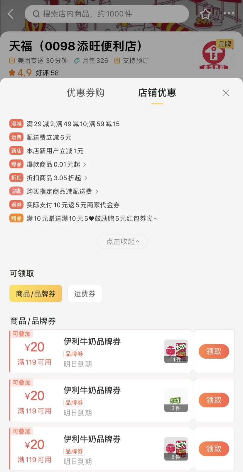 更重要的,在這個一步步積累客源的過程中,天福的強大品牌力也為門店的外賣經營保駕護航著。“一是顧客信任度高,天福品牌,質量有保障;二是天福門店在外賣平臺上會標識有‘品牌’標志。顧客點入超市便利這一大類后,天福品牌門店優先靠前,獲得更高的曝光。”