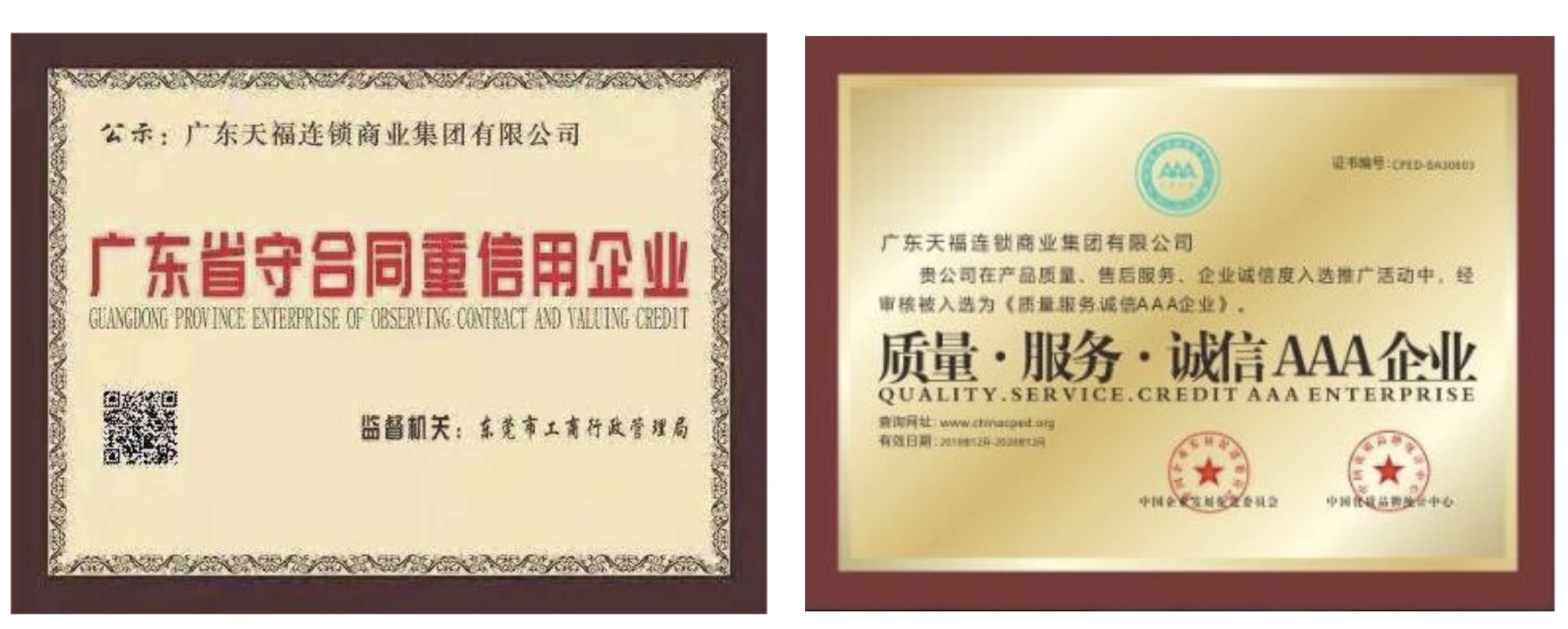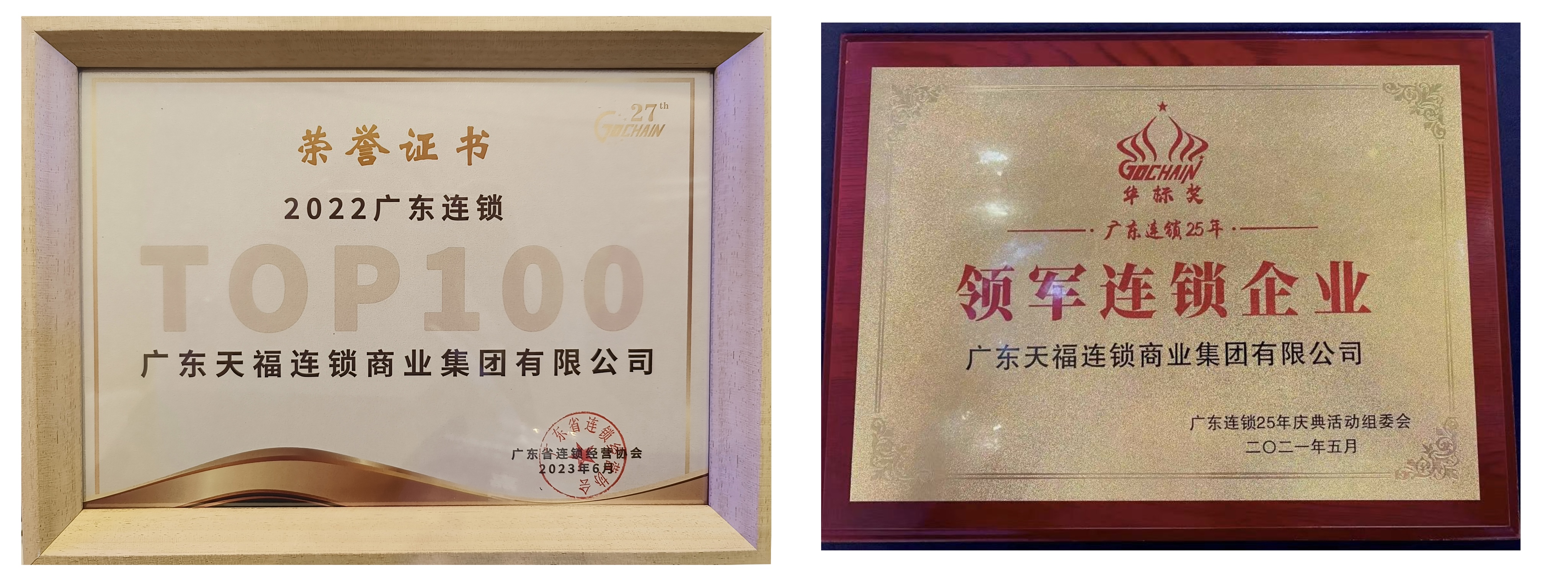 1.天福榮獲“2021年度廣東連鎖百強”、“2020-2022年度廣東商業抗疫保供單位”