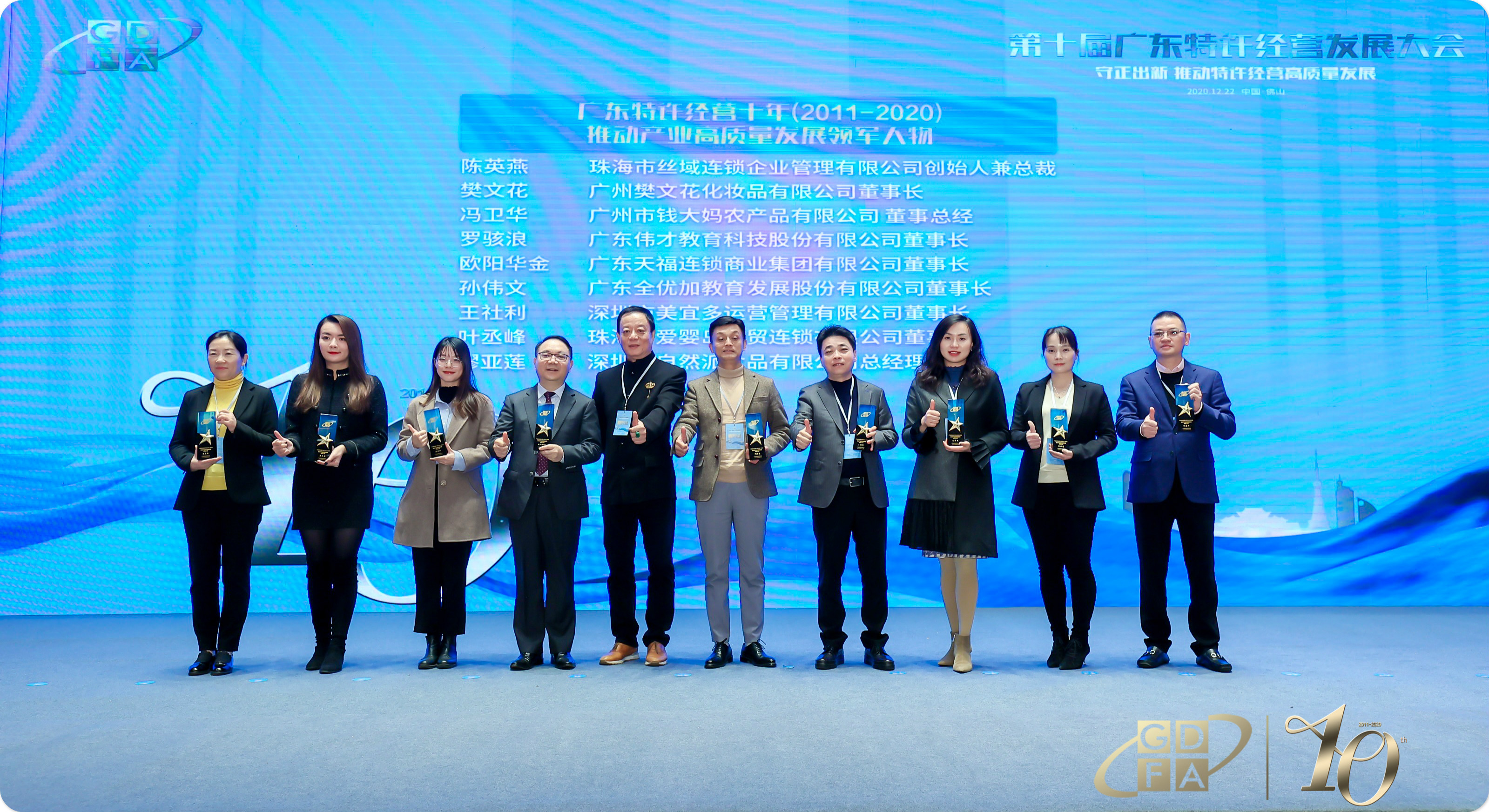 大會對2011-2020年期間推動特許經營產業高品質發展作出杰出貢獻的個人與企業進行表彰,