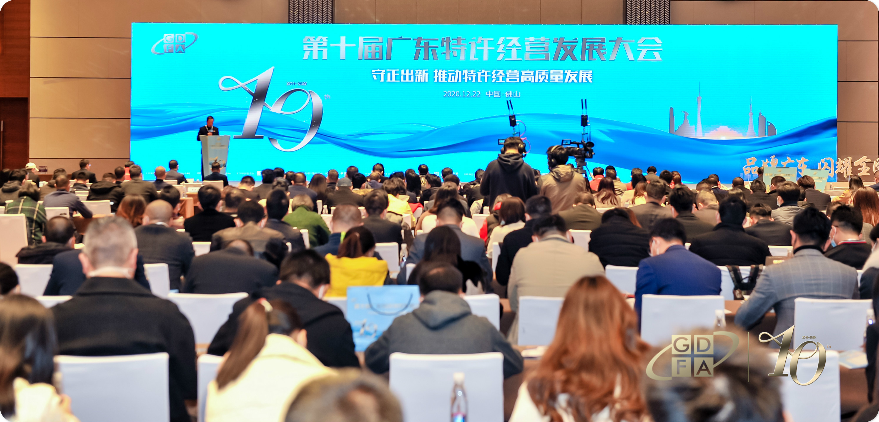 12月22日,由廣東省連鎖經營協會主辦的,以“守正出新 推動特許經營高質量發展”為主題的第十屆廣東特許經營發展大會,在佛山嶺南天地馬哥孛羅酒店隆重召開。第七屆理事會領導班子、會員單位代表,各友好商協會負責人以及社會媒體、企業代表等逾800人出席大會。