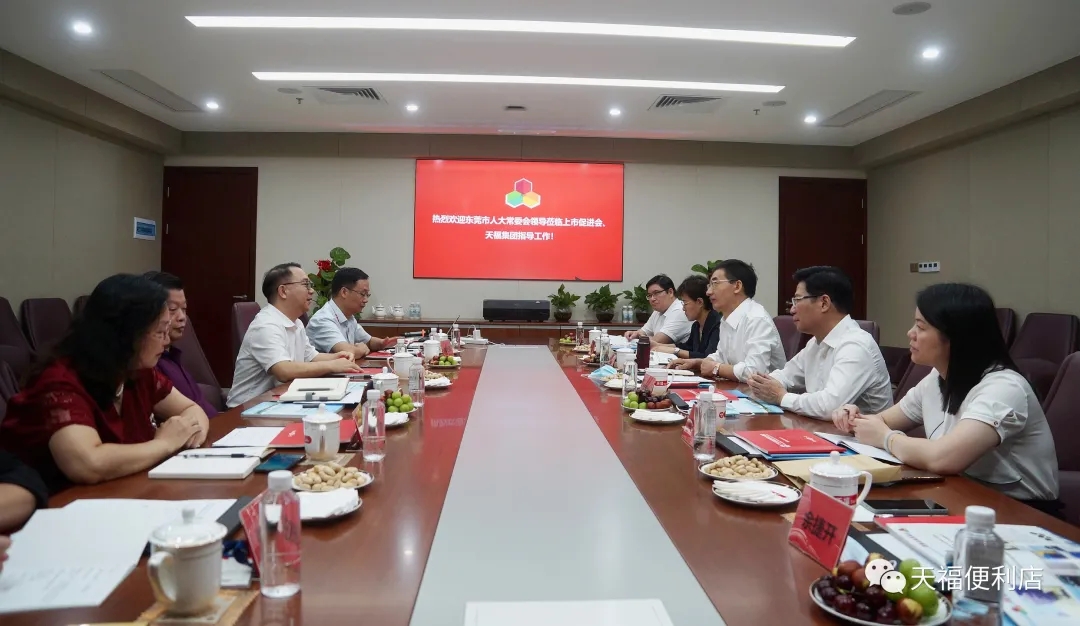 為進一步推動構(gou)建(jian)親清新型政商關系,建(jian)立健全市領導與(yu)商會(hui)協(xie)會(hui)、民營經濟代表人士常態(tai)化(hua)溝通聯系機制,優化(hua)民營企業發展環境,充分發揮商會(hui)協(xie)會(hui)橋(qiao)梁紐帶作用,9月16日,東莞市人大常委會常務副主任潘新潮率隊到東莞市中小企業發展與上市促進會(簡稱:上市促進會)和會長單位廣東天福連鎖商業集團有限公司(簡稱:天福集團)開展調研指導工作。市人大(da)常(chang)委會副主(zhu)任(ren)梁榮(rong)業、市人大(da)選聯(lian)工委主(zhu)任(ren)黃薇、市人大(da)選聯(lian)工委副主(zhu)任(ren)陳(chen)胥丹、南城街(jie)道人大(da)工作(zuo)委員(yuan)會副主(zhu)任(ren)周建華以及市人大(da)工作(zuo)人員(yuan)余捷開陪同調研。