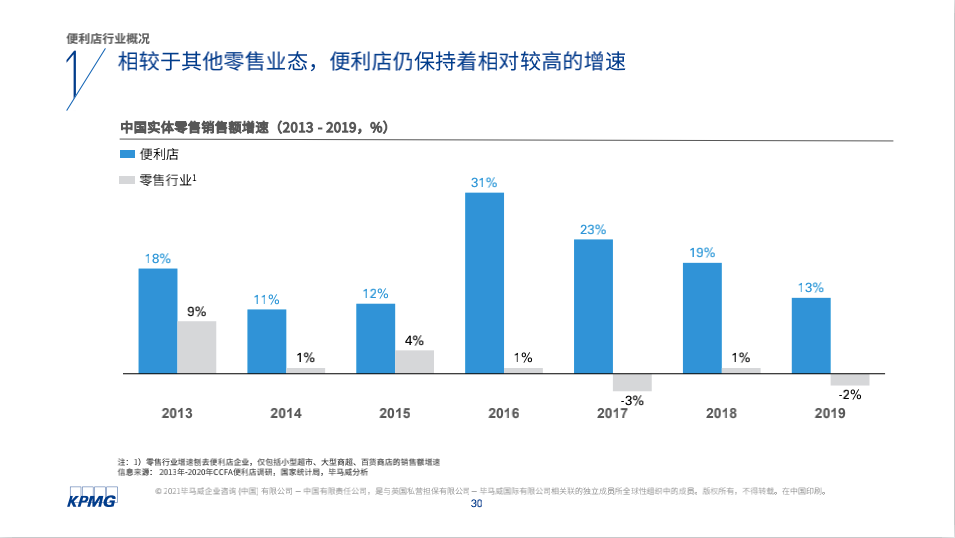 疫情防控常態化下,便利店逐步承擔了保障民生供應的重要職能,通過實現線上線下融合,成為了真正意義上的社區服務站。從數據上看,在中國連鎖經營協會與畢馬威聯合發布的《2021年中國便利店發展報告》中指出,盡管經受疫情影響,但便利店行業少有的仍保持著較高的增長,保持著6%左右的增速。