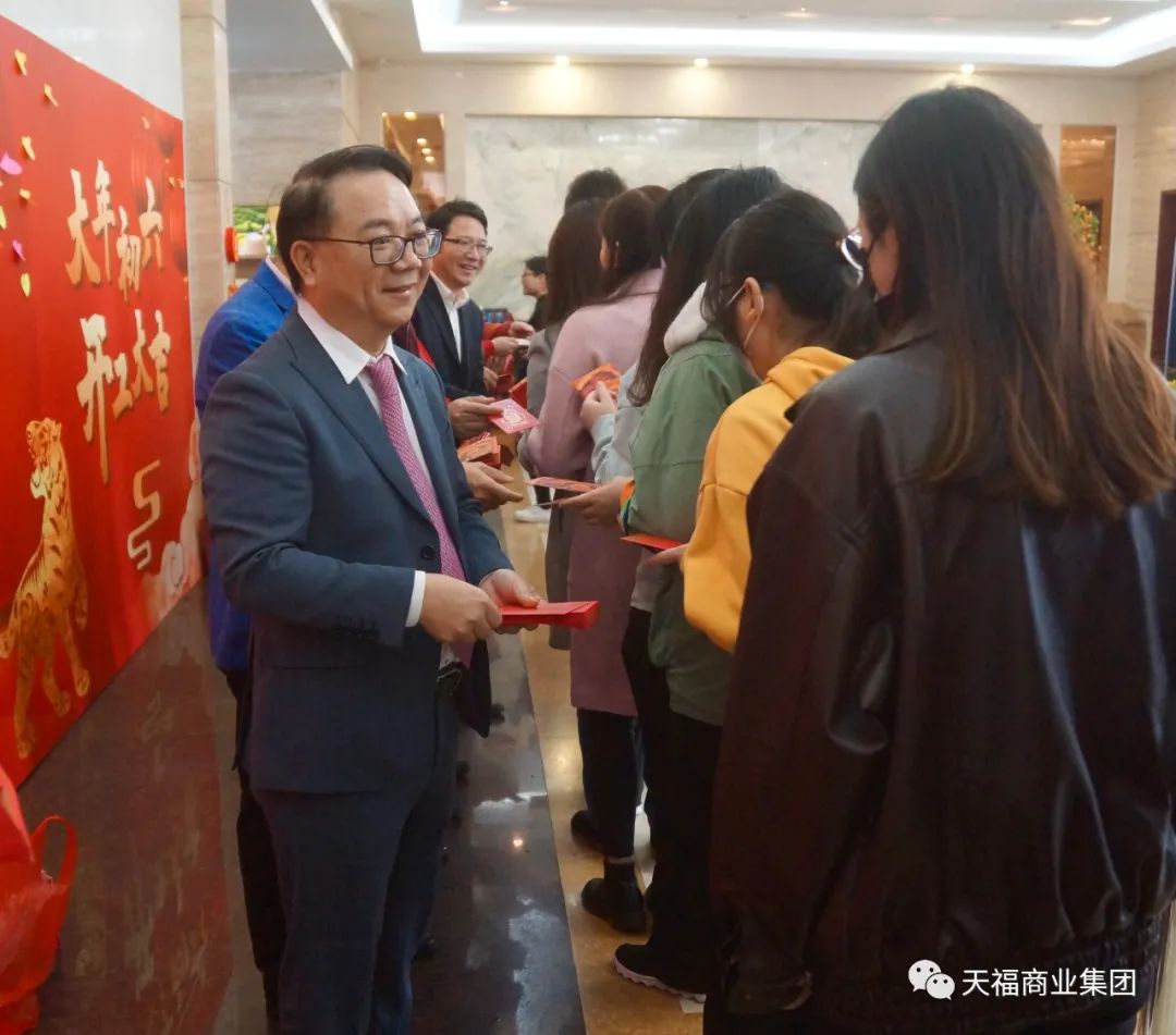 開工利是派發環節上,集團公司領導班子為同事們準備了滿含祝福與期待的開工紅包,為大家加油打氣,激勵大家鉚足干勁,在新的一年里整裝待發,以新姿態迎接新挑戰,以新面貌踏上新征程!同事們也在互致節日問候的過程中,相互表達著對虎年的美好期盼和展望。