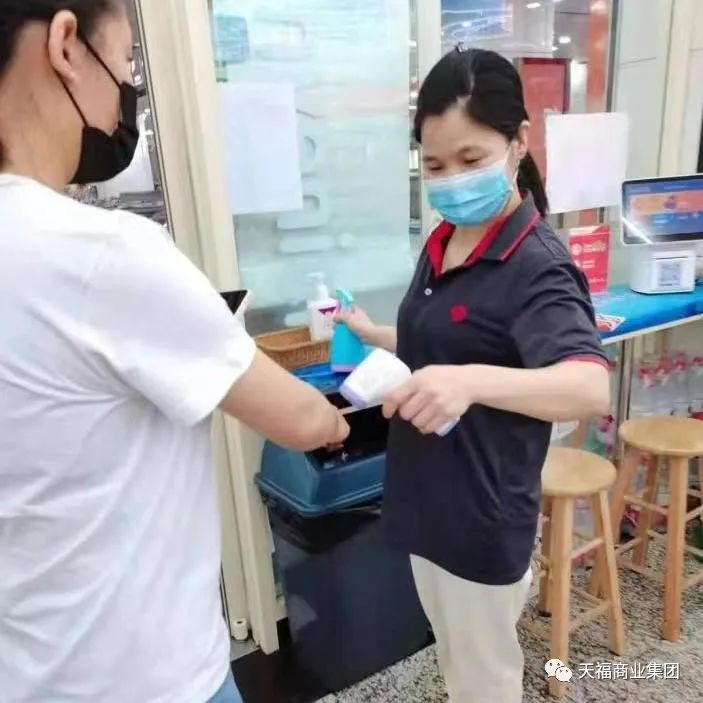 疫(yi)情(qing)期間,為(wei)確保消費者(zhe)到店(dian)(dian)安全(quan),天(tian)福(fu)門(men)店(dian)(dian)將(jiang)嚴(yan)格落實政(zheng)府(fu)防疫(yi)政(zheng)策,做好(hao)日常防護和消殺工作。門(men)店(dian)(dian)店(dian)(dian)員(yuan)必須全(quan)程佩戴口(kou)罩,實施(shi)體溫檢測和健(jian)康(kang)碼檢查(cha)。經營(ying)期間,門(men)店(dian)(dian)內將(jiang)嚴(yan)格執行消毒(du)工作,對店(dian)(dian)內公共區域經常接觸使用(yong)的(de)設備用(yong)酒(jiu)精或者(zhe)消毒(du)水清(qing)潔消毒(du),力保店(dian)(dian)內環境的(de)衛生和安全(quan)。