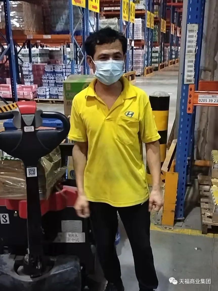 在疫情形勢最嚴峻的時候,因為門店嚴重缺貨,司機張磊沒有退縮,連忙拿上公司申辦的車輛通行證,載著貨品奔赴到當時東莞疫情最為嚴重的區域大朗。之后,張磊就成為了專線司機,專門負責大朗地區天福門店的配送工作。從2月28日到今天,張磊共往大朗配送了20趟,有力地保障了疫區門店的正常供給。