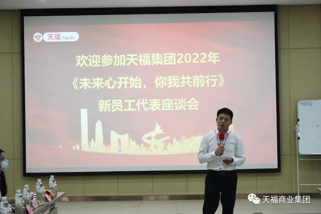 座談會上,集團常(chang)務副總(zong)裁(cai)成(cheng)世恩(en)先生為(wei)新進員工們分享(xiang)了當前(qian)行業發展前(qian)景(jing),指出(chu)在疫(yi)情(qing)大環境下(xia)便利店行業(ye)的堅(jian)挺(ting)與(yu)穩步發展態勢,并向(xiang)員工(gong)代表(biao)們提出(chu)了兩(liang)點期望:一是盡快(kuai)適應工(gong)作,融入天(tian)福文化氛(fen)圍;二是做好(hao)表(biao)率,積(ji)極(ji)投入工(gong)作,傳遞奮(fen)斗精神。