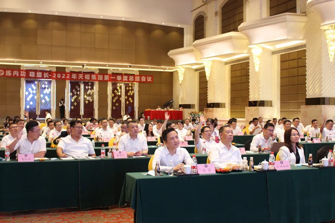 4月23日,天福集團在東(dong)莞市(shi)富盈(ying)酒店隆重召開2022年第一季(ji)度(du)工作總結會議。會(hui)議以“練(lian)內功,穩增長”為主題(ti),回(hui)顧總結(jie)2022年(nian)第一季度的(de)經營成果,聚焦謀定下(xia)一階段發展(zhan)方向,號召動(dong)員全(quan)體人員奮力沖刺(ci)全(quan)年(nian)目(mu)標,力求(qiu)創造(zao)良好經濟效益,實現創新突破。根據政(zheng)府防疫部(bu)門(men)相(xiang)關(guan)要求(qiu),大會(hui)嚴格(ge)控制參(can)會(hui)人數。