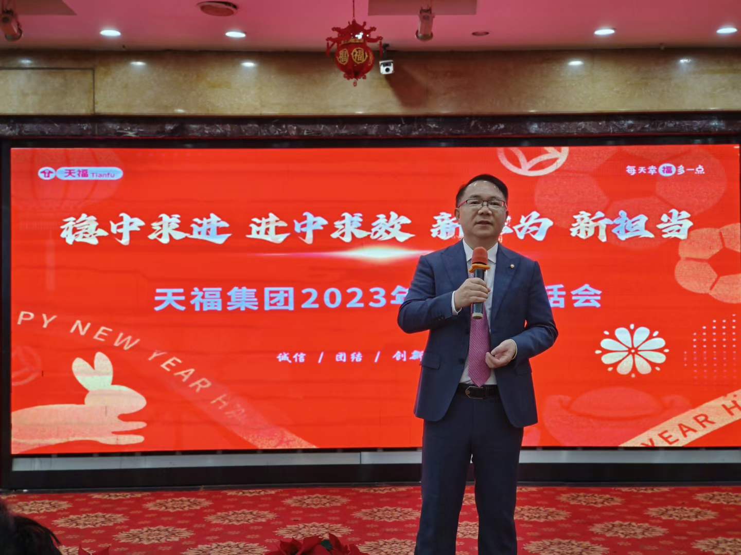 集團公司的迎春茶話會在集團董事長兼總裁歐陽華金先生精彩而充滿斗志的新年致辭中拉開帷幕。歐陽總首先對全體員工表達了真摯的新年祝福與問候。歐陽總表示,2022年,是天福集團乘風破浪,碩果累累的一年,這一年集團公司整體營收創歷史新高,并在門店營運、員工保障、抗疫保供等各方面工作都取得了新進步、展現了新作為。在充滿挑戰與機遇的2023年,面對復蘇回暖的經濟形勢與國家發展大勢,天福始終堅守“服務民生,滿足老百姓日常需求”的初心使命,堅定發展信心,穩中求進,進中求效,在新征程上實現新的飛躍。歐陽總勉勵全體天福人齊心協力,奮勇拼搏,不斷朝著天福”萬店夢“宏偉藍圖闊步邁進。