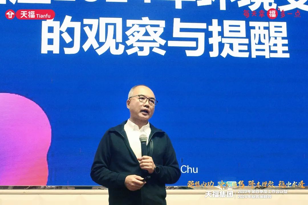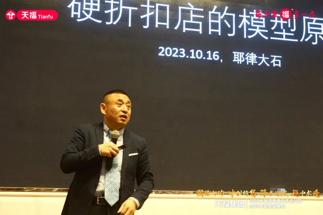大會(hui)邀請資深行業專家朱宏濤、鮑居武兩位老師同參會(hui)者們分享了《面(mian)對2024環境變化(hua)下的提醒》和《中國消費變(bian)化之硬折扣》精(jing)彩課程,洞察解析中國消費變(bian)化新趨勢,并提出應(ying)對未來行業(ye)變(bian)化的重要(yao)思考和建議,為天福發展提供(gong)全新思路,賦能(neng)天福精英成(cheng)長,不斷加碼(ma)、打造學習(xi)型組(zu)織。