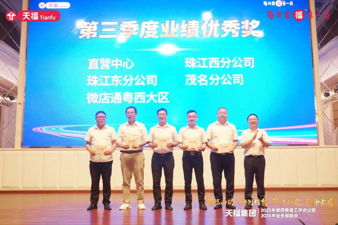 本次(ci)大(da)會還舉行了業務單位(wei)第三季度業績優(you)秀獎頒發儀(yi)式,表彰在激烈的市場競(jing)爭中,奮勇拼搏,創造優(you)異成績的團(tuan)隊,激勵全體天福(fu)成員(yuan)團(tuan)結協作、攻堅克(ke)難、追求卓越。